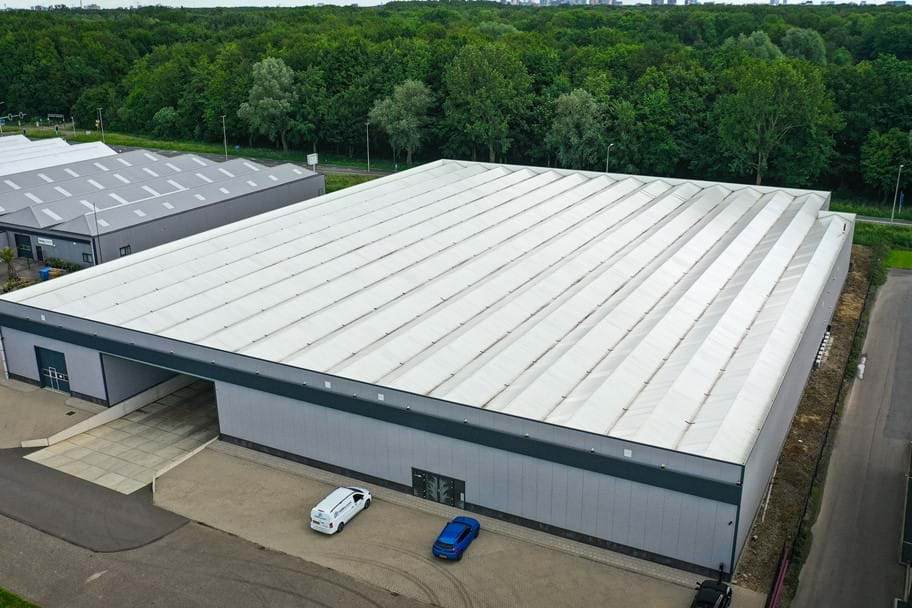 Kerklaan Greenhouses has realized a business space of 7,022 m² in Aalsmeer, North Holland. A 60 mm sandwich articulated deck system is used on the deck of the industrial hall. Light plates have been incorporated into this deck system, which provide more light into the business space.