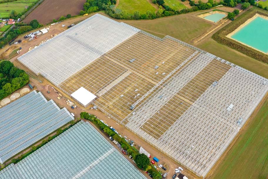 Voor Berries Direct Farming in Hempnall, Verenigd Koninkrijk, zijn we bezig met het bouwen van een volledig gebruikte serre van 64.560 m².