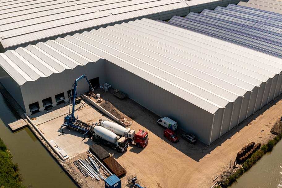 Vervolgens is er een 200 mm dikke betonvloer aangebracht, uitgevoerd met een extra slijtlaag.