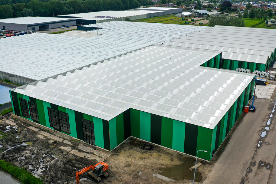 Wir haben in Aalsmeer eine Geschäftsfläche von 4.759 m² geschaffen. Dieser Gewerberaum verfügt über eine völlig neue Stahlkonstruktion, bestehend aus 7,25 Meter hohen Stützen und 13,50 Meter langen (Trog-)Gitterträgern.