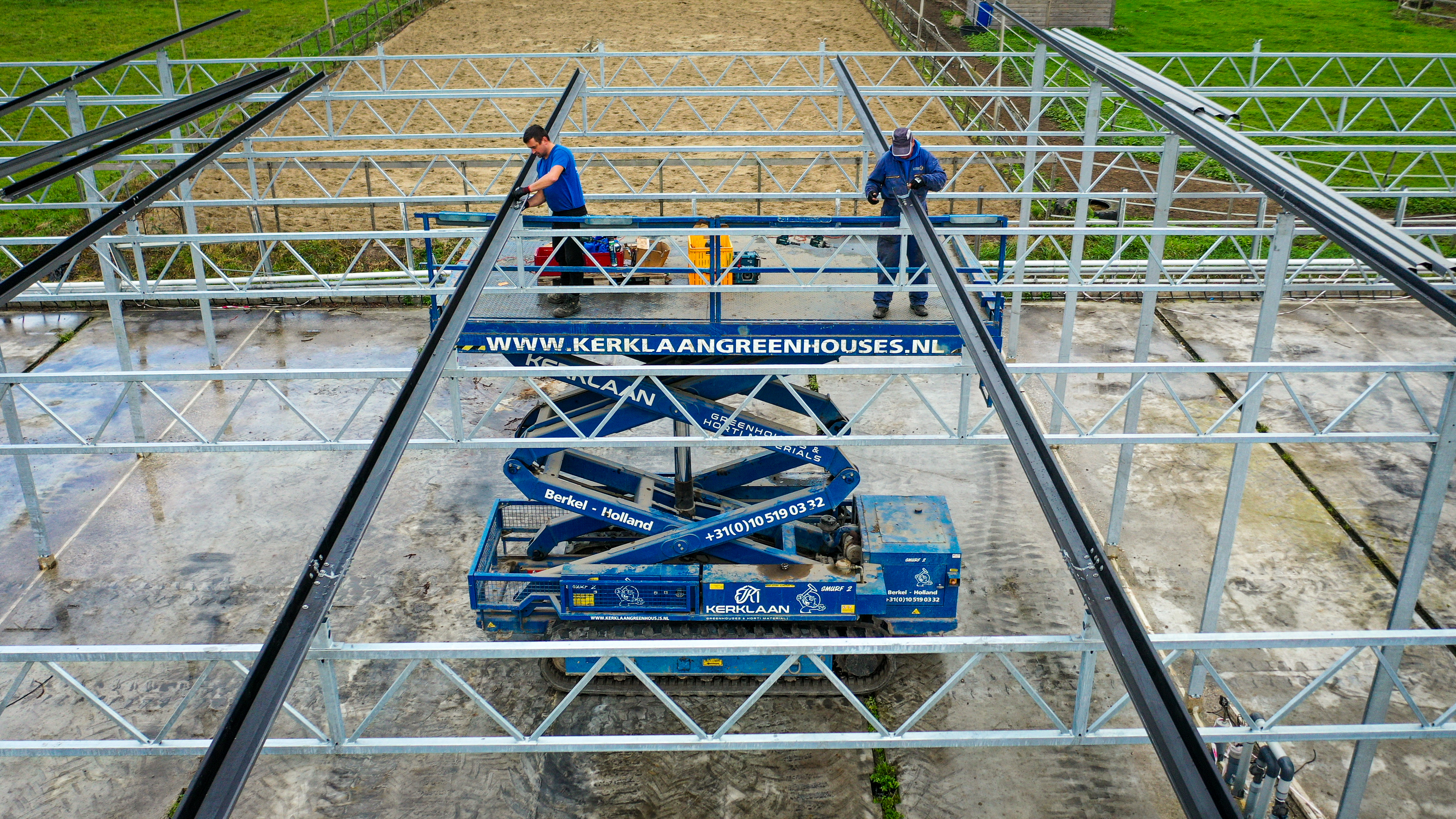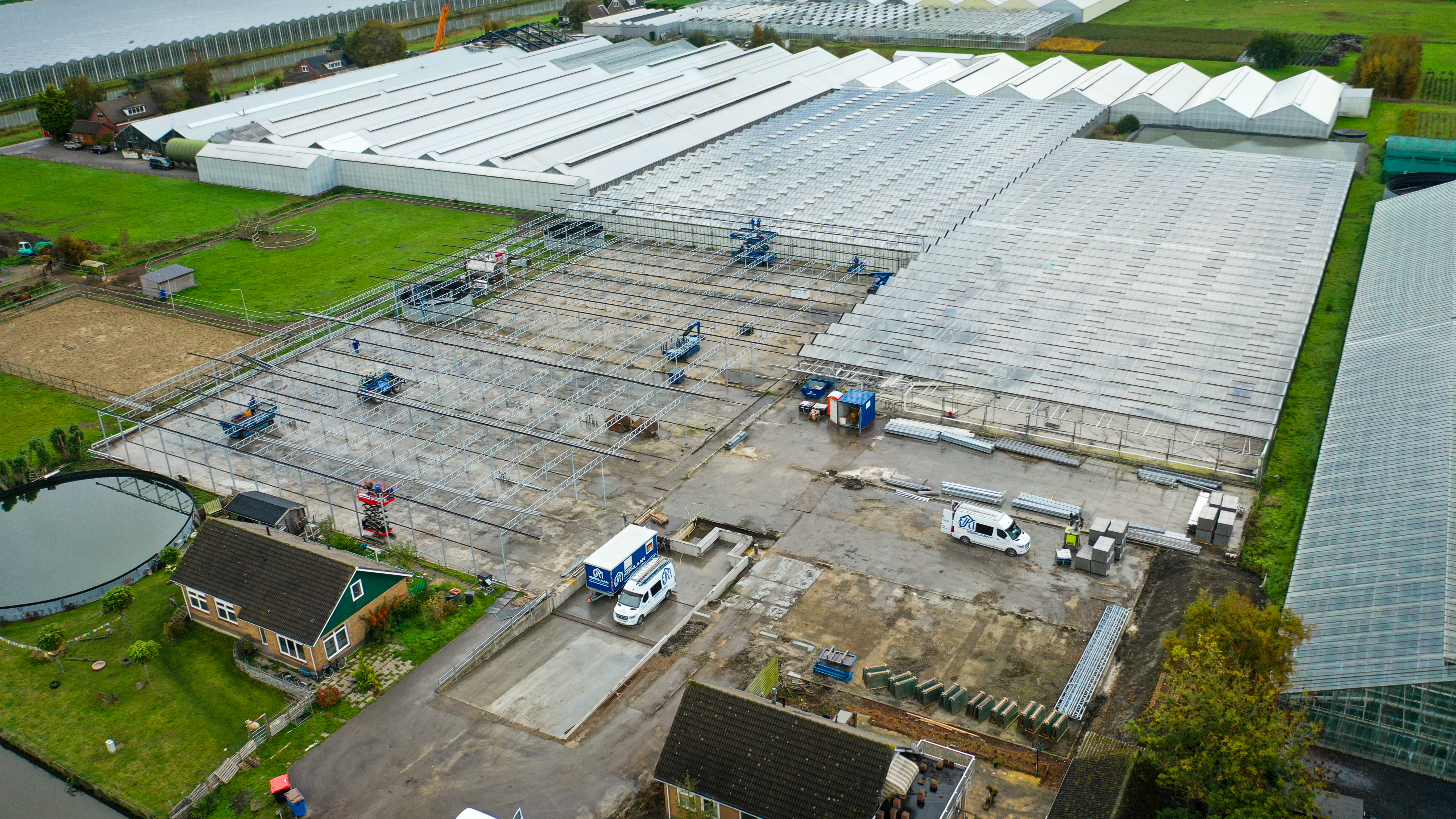 Bei Kwekerij Aris in Kudelstaart schaffen wir einen modernen Anbauraum mit zwei Abteilungen, darunter einen Geschäftsraum mit Sandwichpaneelen. Die Stahlkonstruktion dieses Gewächshauses besteht größtenteils aus neuen Materialien, während ein gebrauchtes Aluminium-Dachsystem zum Einsatz kommt.