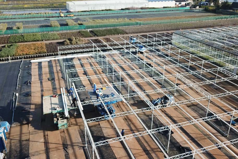 À Boomkwekerij Out à Boskoop, en Hollande-Méridionale, Kerklaan Greenhouses a réalisé une zone de culture de 3 156 m² et une salle de criblage de 3 033 m². Des plaques de route en acier ont été utilisées lors de la construction de ce projet. Ces plaques de route en acier garantissaient que le sol de culture existant restait intact.