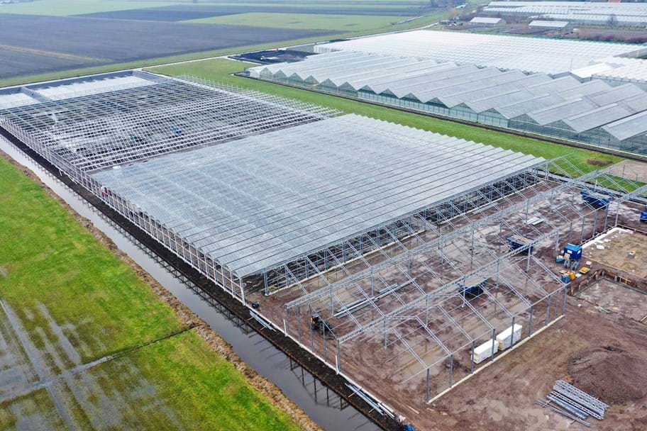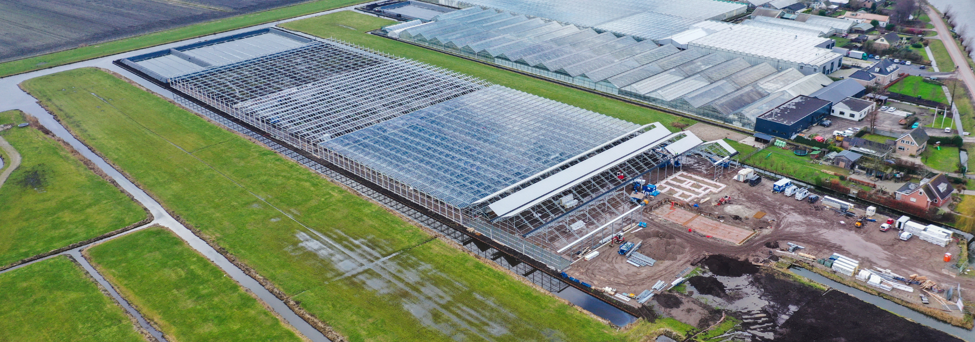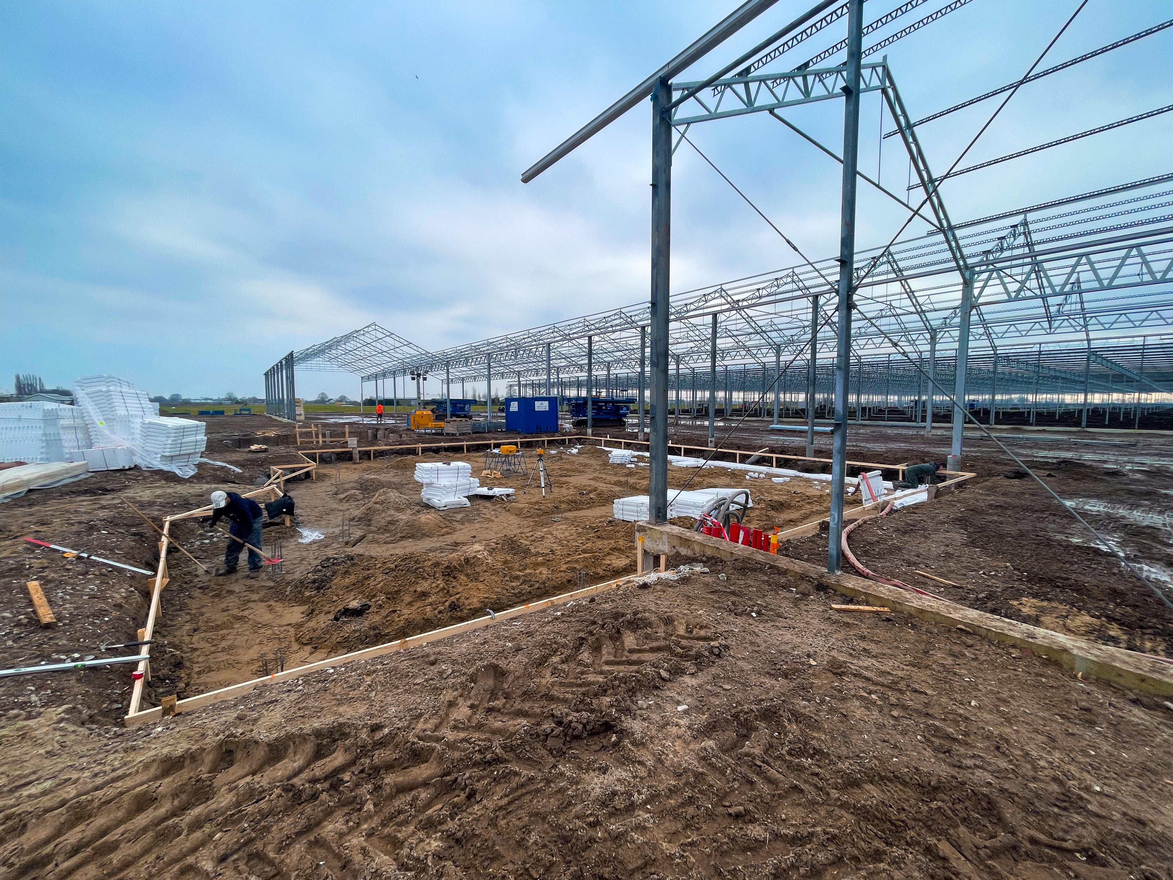 À Nieuwveen, nous travaillons à la réalisation d'un complexe avec des salles d'escrime, une serre Venlo et un espace commercial d'une superficie totale de 20.232 m². Des matériaux partiellement utilisés sont utilisés. La construction de la structure en acier de l'espace d'exploitation a été récemment achevée. Après cela, ils ont commencé à installer le système de terrasse.