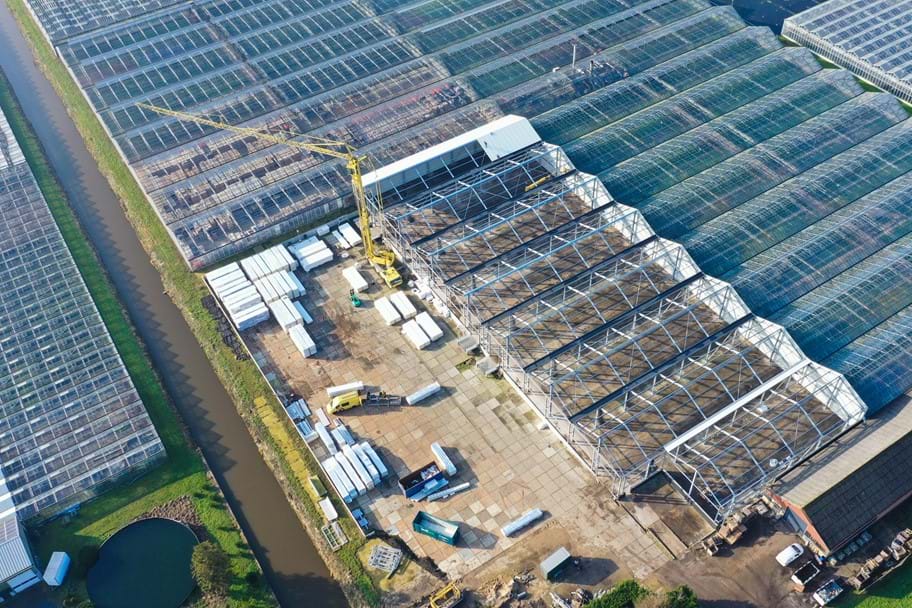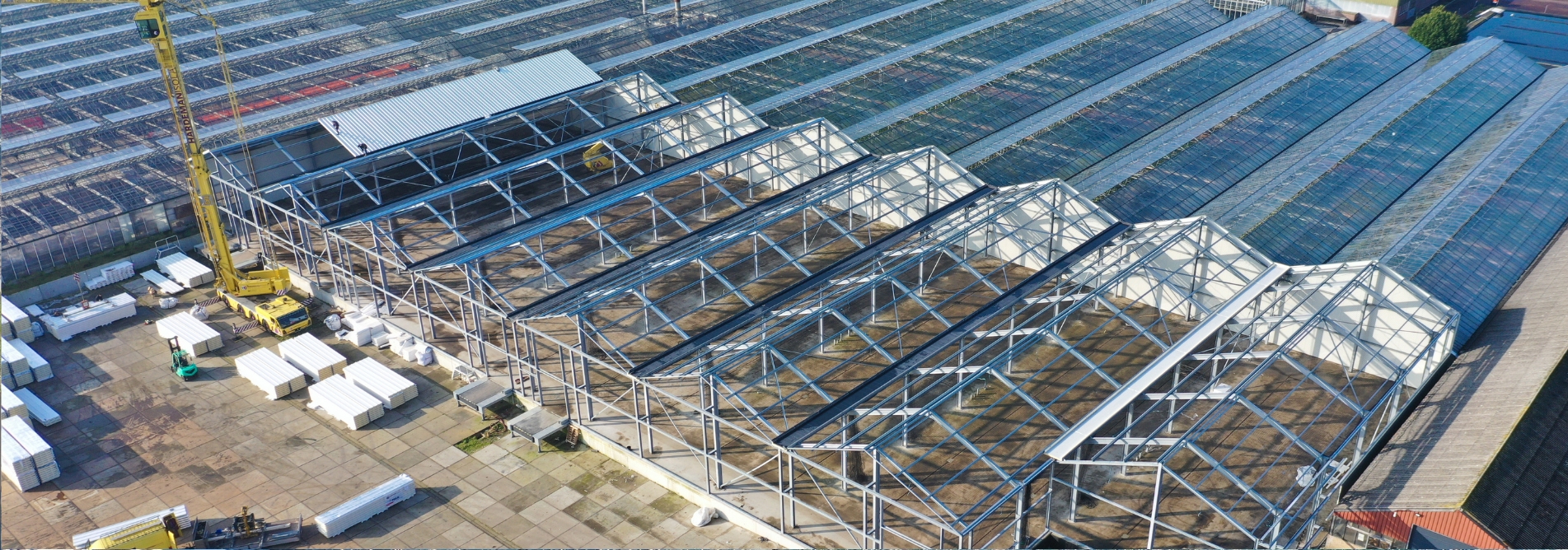 À Mijdrecht, nous construisons un entrepôt complet de grande portée d'une superficie totale de 4.070 m². Nous dotons cet espace commercial d'une construction en acier, d'un système de façade sandwich, d'un système de terrasse sandwich, de diverses portes basculantes et de portes piétonnes. Nous installons actuellement le système de terrasse sandwich.