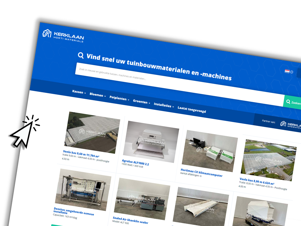 Daarnaast bieden wij een groot aanbod gebruikte tuinbouwmachines en -materialen onder het label Kerklaan Horti Materials.